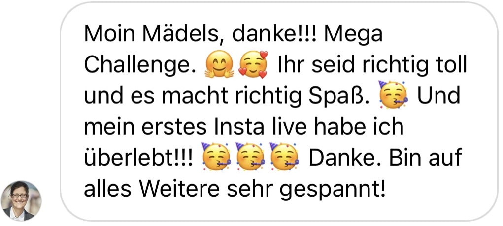 Du gehst da raus mit Klarheit im Kopf, Feuer im Bauch und diesem leisen, aber unfassbar starken Gefühl: Ich kann das. Ich mach das. Und ja – ich hol mir jetzt die Kundinnen, die zu mir passen.