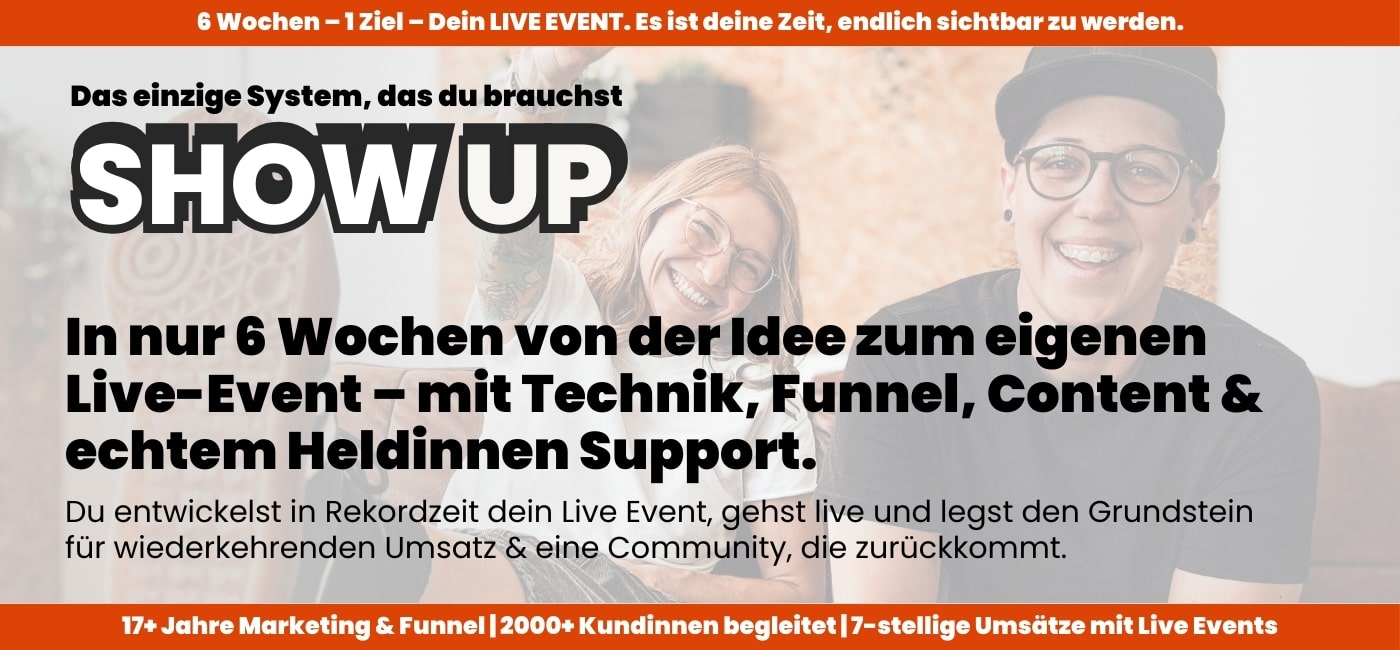 💥 Sicher dir jetzt 200€ Rabatt mit dem Code SHOWUP200. Wir starten gemeinsam am 8. Dezember, damit du im Januar ready für Umsatz bist.💥