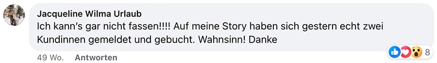 Gerade deshalb haben wir in unserem ersten Launch mit nur 400 Followern bereits 43000 € Umsatz erzielt und im zweiten mit gerade einmal 1500 Followern 6-stellig gelauncht. Seitdem haben wir konstant mehrfach 6-stellige Jahresumsätze während wir auch mal mehrwöchige Social Media Pausen machen können.